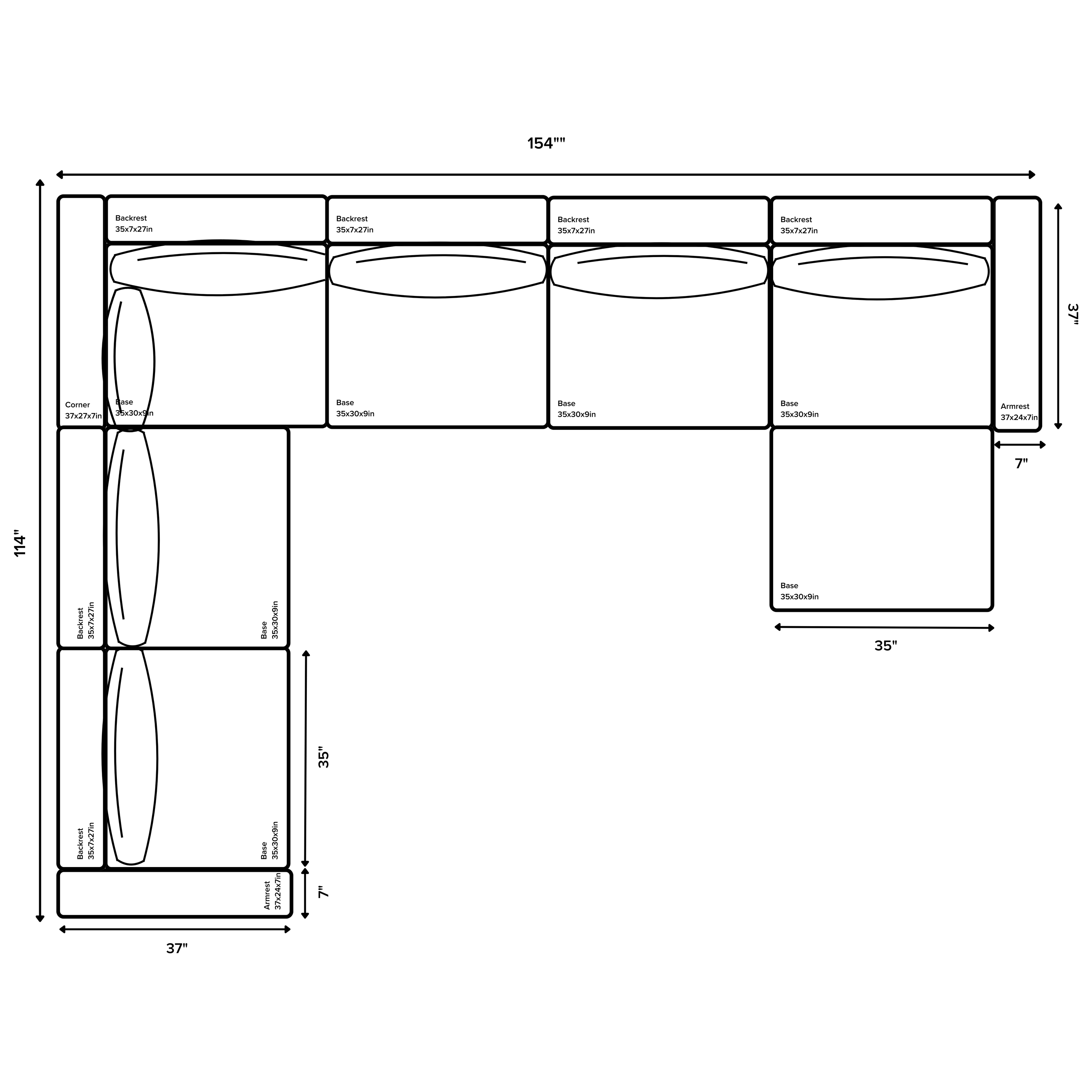 WIDTH: 154", DEPTH: 114"/ 67"